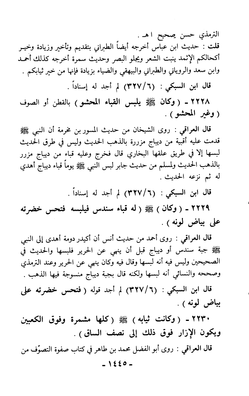 2228 - (وكان - صلّى الله عليه وسلم - يلبس القباء المحشو) بالقطن أو الصوف (وغير المحشو).