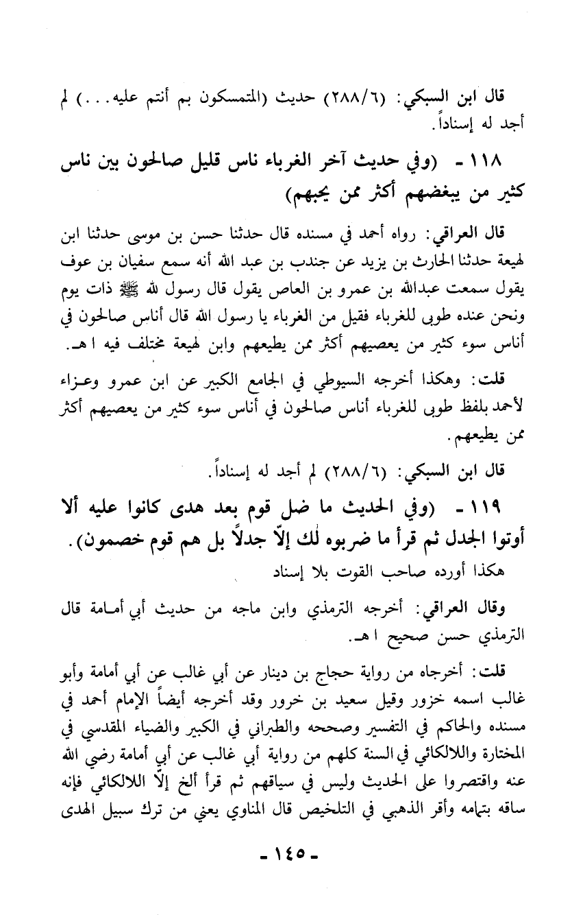 119 - (وفي الحديث ما ضل قوم بعد هدى كانوا عليه إلا أوتوا الجدل ثم قرأ ما ضربوه لك إلاَّ جدلاً بل هم قوم خصمون).