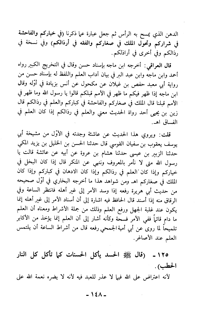125 - (قال - صلى الله عليه وسلم - الحسد يأكل الحسنات كما تأكل النار الحطب).