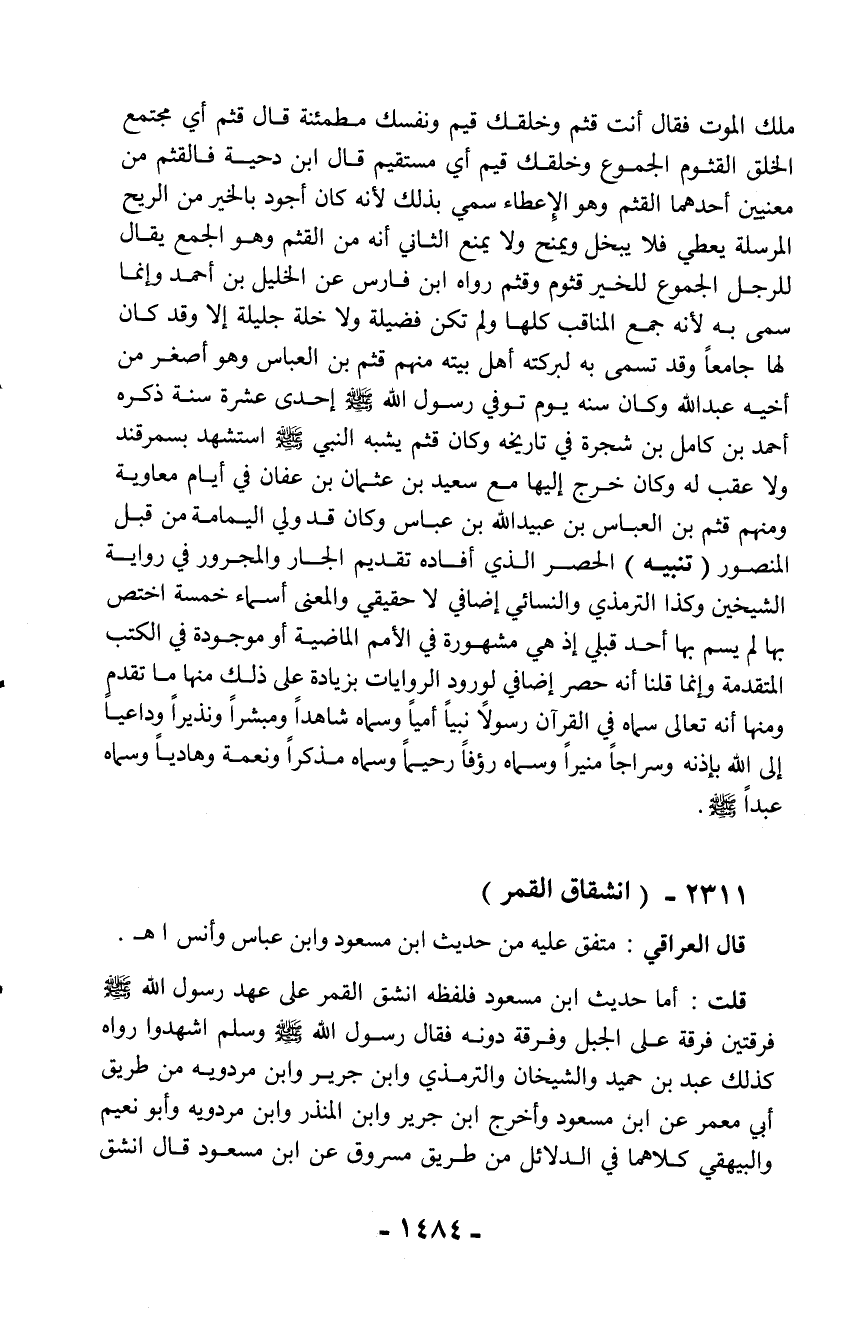 قلت: أما حديث ابن مسعود فلفظه انشق القمر على عهد رسول الله - صلّى الله عليه وسلم - فرقتين فرقة على الجبل وفرقة دونه فقال رسول الله - صلّى الله عليه وسلم - وسلم اشهدوا رواه كذلك عبد بن حميد والشيخان والترمذي وابن جرير وابن مردويه من طريق أبي معمر عن ابن مسعود وأخرج ابن جرير وابن المنذر وابن مردويه وأبو نعيم والبيهقي كلاهما في الدلائل من طريق مسروق عن ابن مسعود قال انشق