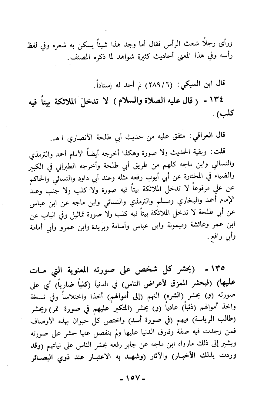 134 - (قال عليه الصلاة والسلام) لا تدخل الملائكة بيتاً فيه كلب).