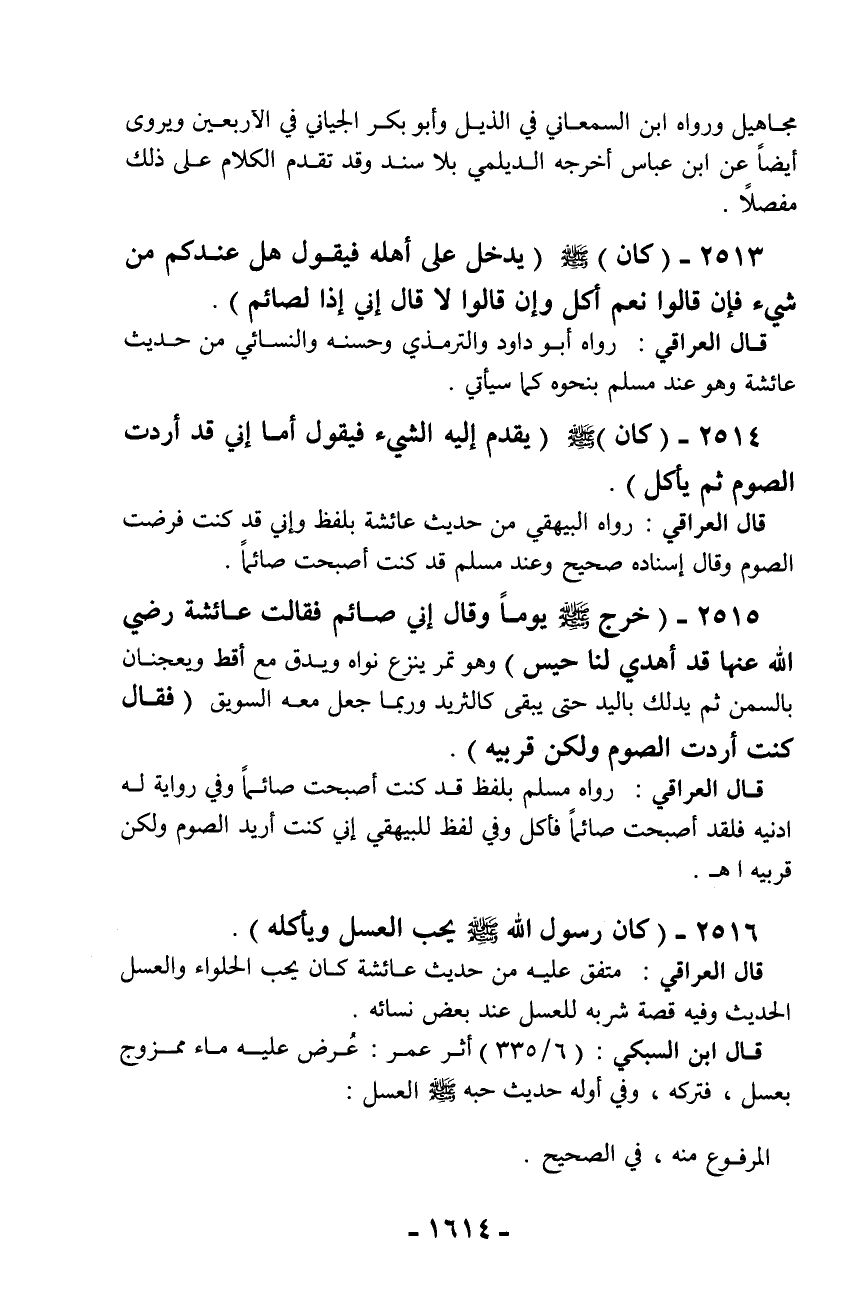 2516 - (كان رسول الله - صلّى الله عليه وسلم - يحب العسل ويأكله).