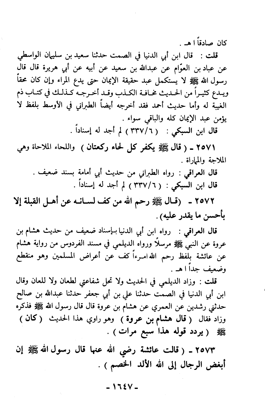 2572 - (قال - صلّى الله عليه وسلم - رحم الله من كف لسانه عن أهل القبلة إلا بأحسن ما يقدر عليه).