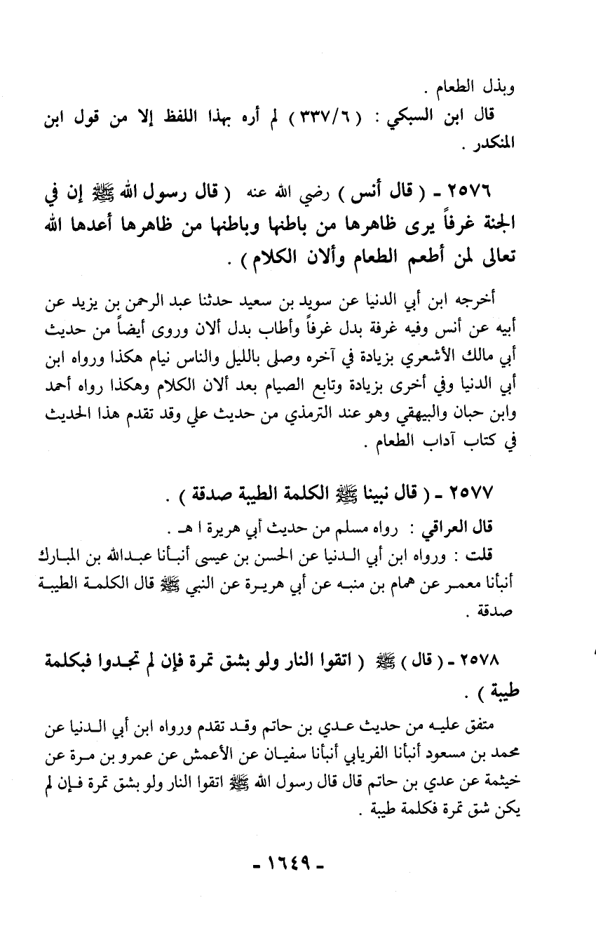 2578 - (قال) - صلّى الله عليه وسلم - (اتقوا النار ولو بشق تمرة فإن لم تجدوا فبكلمة طيبة).