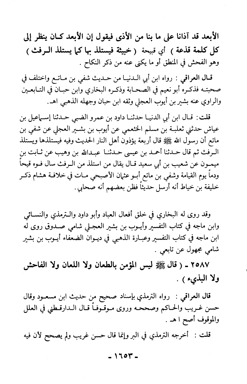 2587 - (قال - صلّى الله عليه وسلم - ليس المؤمن بالطعان ولا اللعان ولا الفاحش ولا البذيء).