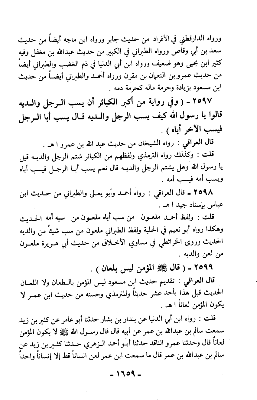2599 - (قال - صلّى الله عليه وسلم - المؤمن ليس بلعان).