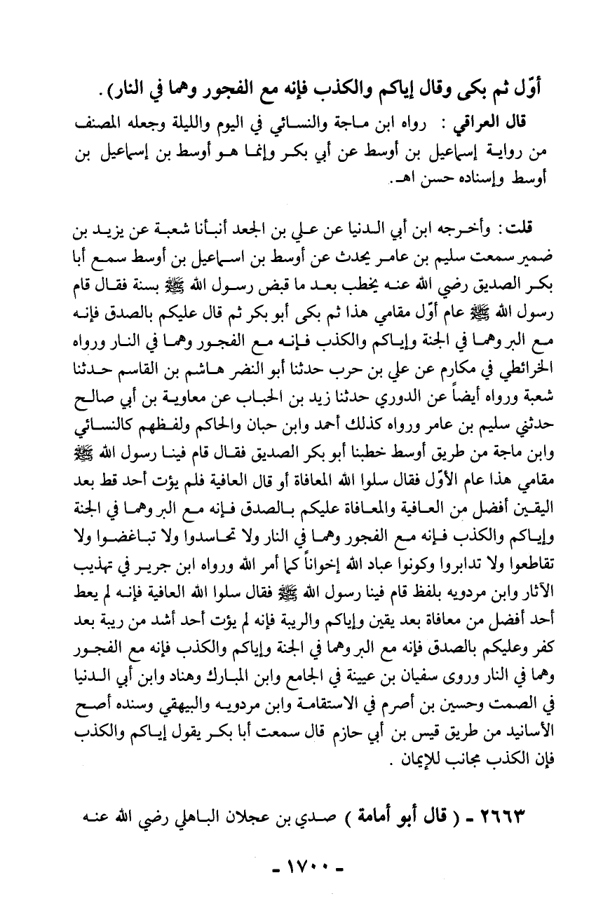 2663 - (قال أبو أمامة) صدي بن عجلان الباهلي رضي الله عنه