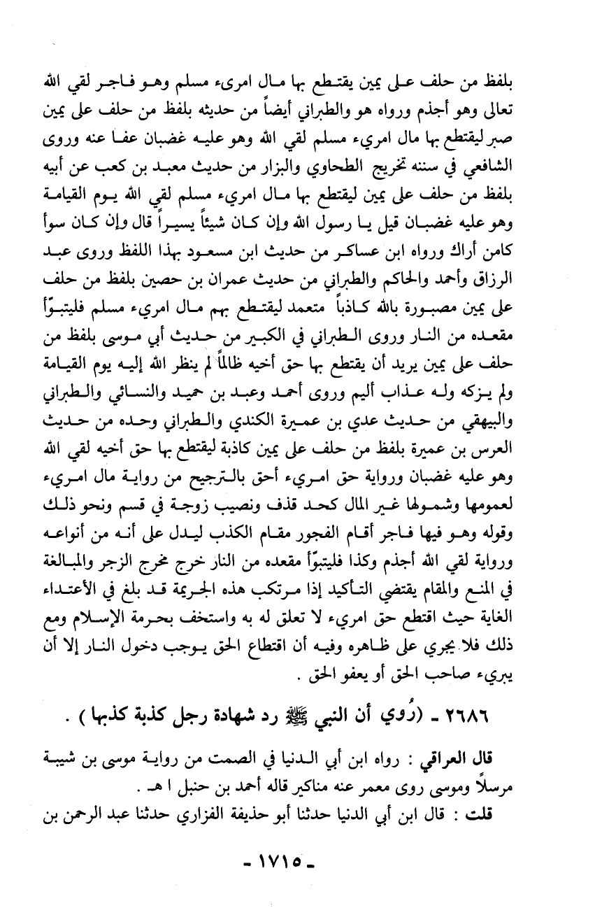 2686 - (رُوي أن النبي - صلّى الله عليه وسلم - رد شهادة رجل كذبة كذبها).
