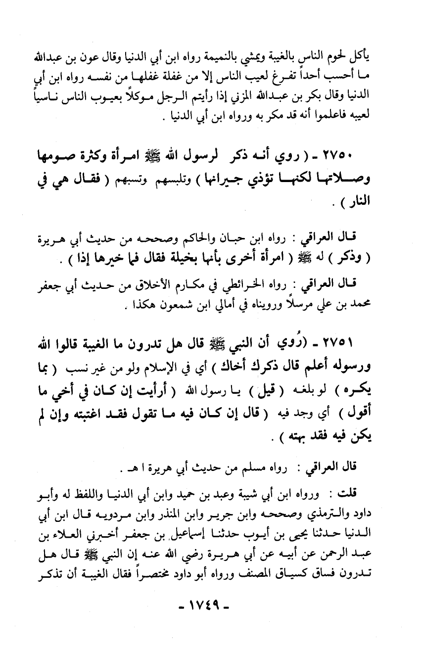 قلت: ورواه ابن أبي شيبة وعبد بن حميد وابن أبي الدنيا واللفظ له وأبو داود والترمذي وصححه وابن جرير وابن المنذر وابن مردويه قال ابن أبي الدنيا حدثنا يحيى بن أيوب حدثنا إسماعيل بن جعفر أخبرني العلاء بن عبد الرحمن عن أبيه عن أبي هريرة رضي الله عنه إن النبي - صلّى الله عليه وسلم - قال هل تدرون فساق كسياق المصنف ورواه أبو داود مختصراً فقال الغيبة أن تذكر