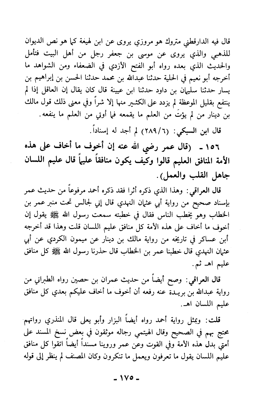 156 - (قال عمر رضي الله عنه إن أخوف ما أخاف على هذه الأمة المنافق العليم قالوا وكيف يكون منافقاً عليماً قال عليم اللسان جاهل القلب والعمل).