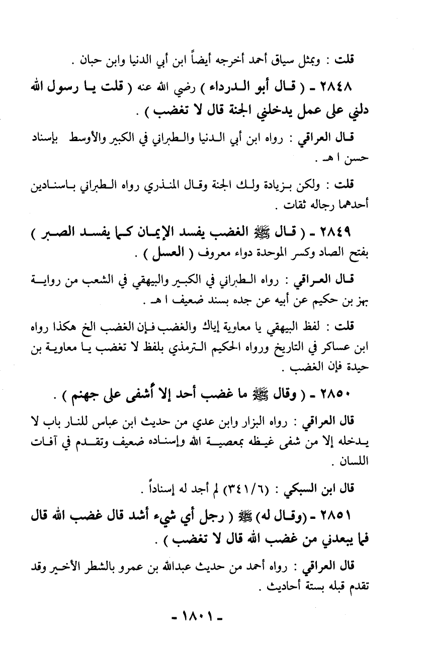 2848 - (قال أبو الدرداء) رضي الله عنه (قلت يا رسول الله دلني على عمل يدخلني الجنة قال لا تغضب).