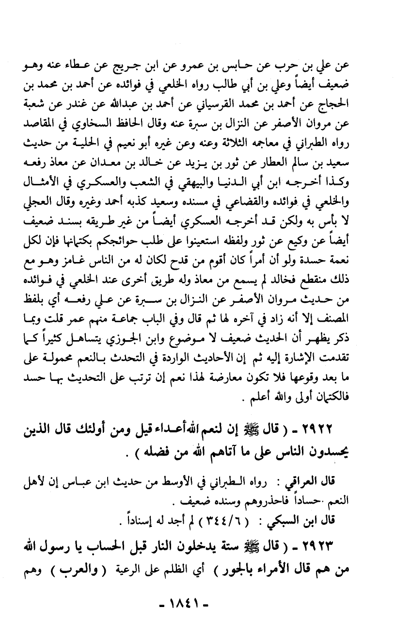 2922 - (قال - صلّى الله عليه وسلم - إن لنعم الله آعداء قيل ومن أولئك قال الذين يحسدون الناس على ما أتاهم الله من فضله).