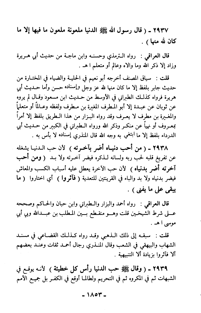 2937 - (قال رسول الله - صلّى الله عليه وسلم - الدنيا ملعونة ملعون ما فيها إلا ما كان لله منها).