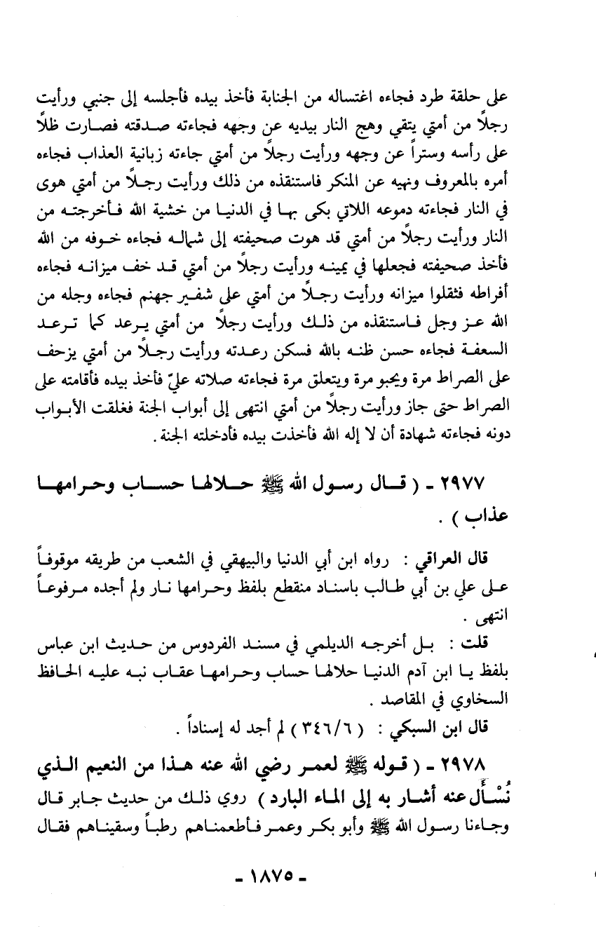 2977 - (قال رسول الله - صلّى الله عليه وسلم - حلالها حساب وحرامها عذاب).