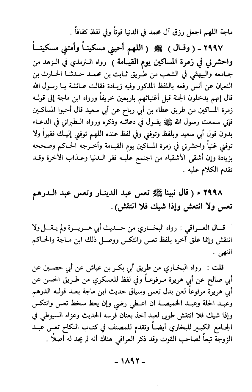2998 - (قال نبينا - صلّى الله عليه وسلم - تعس عبد الدينار وتعس عبد الدرهم تعس ولا انتعش وإذا شيك فلا انتقش).