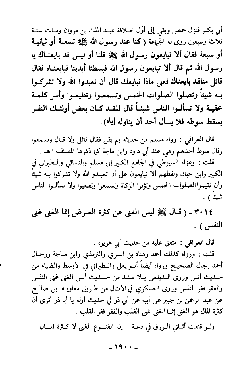 قلت: وعزاه السيوطي في الجامع الكبير إلى مسلم والنسائي والطبراني في الكبير وابن حبان ولفظهم ألا تبايعون على أن تعبدو الله ولا تشركوا به شيئاً وأن تقيموا الصلوات الخمس وتؤتوا الزكاة وتسمعوا وتطعيوا ولا تسألوا الناس شيئاً).