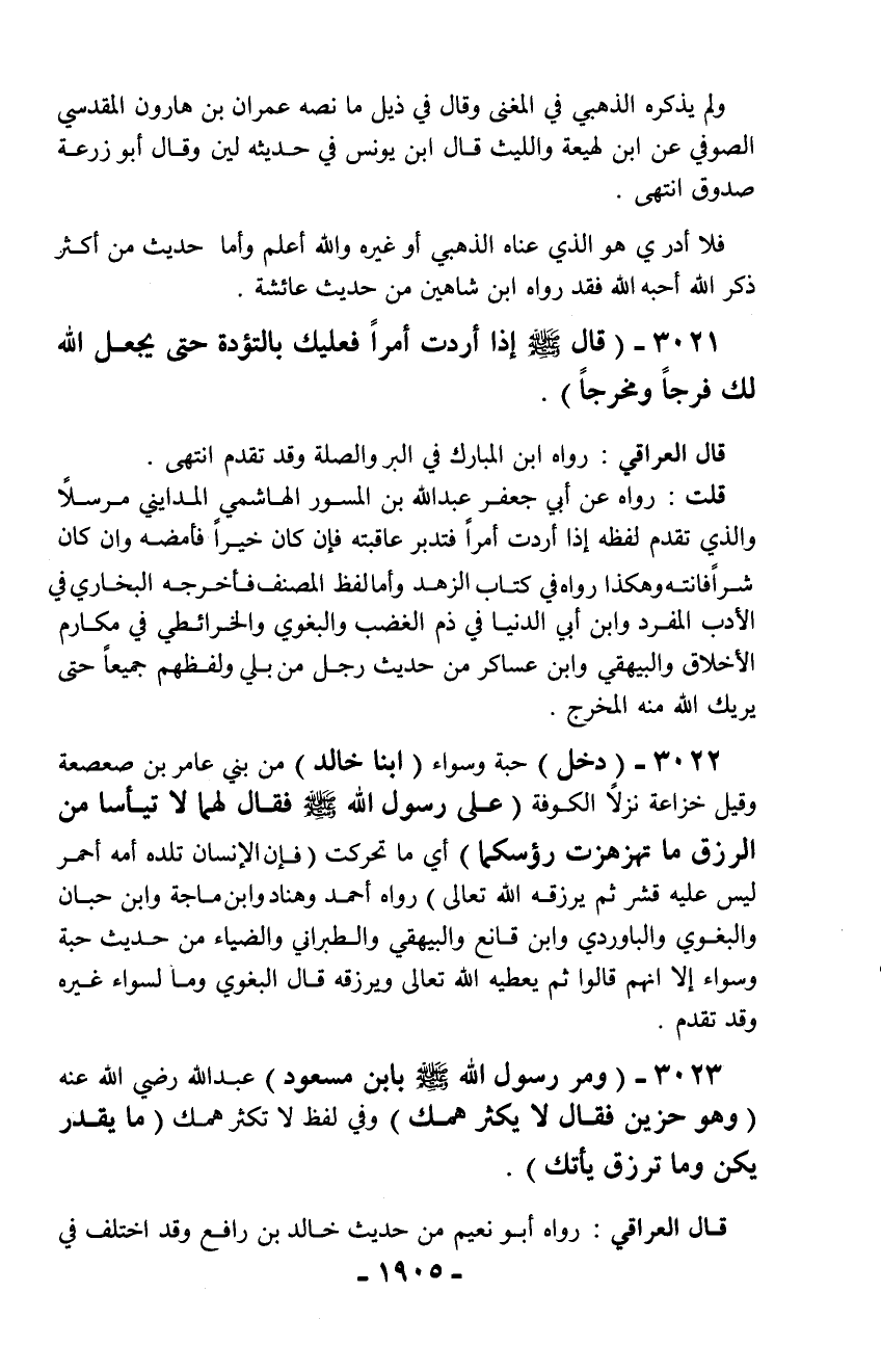 3023 - (ومر رسول الله - صلّى الله عليه وسلم - بابن مسعود) عبد الله رضي الله عنه (وهو حزين فقال لا يكثر همك) وفي لفظ لا تكثر همك (ما يقدر يكن وما ترزق يأتك).