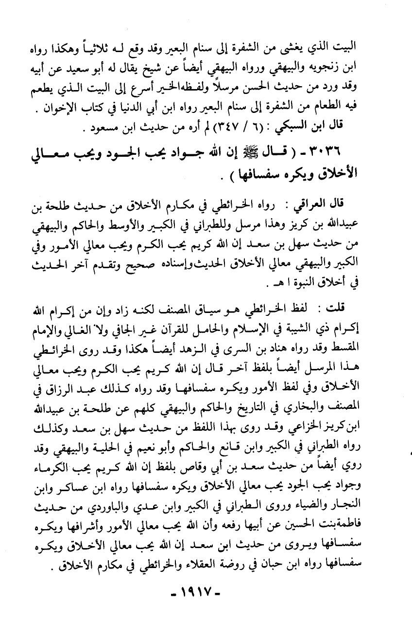3036 - (قال - صلّى الله عليه وسلم - إن الله جواد يحب الجود ويحب معالي الأخلاق ويكره سفسافها).