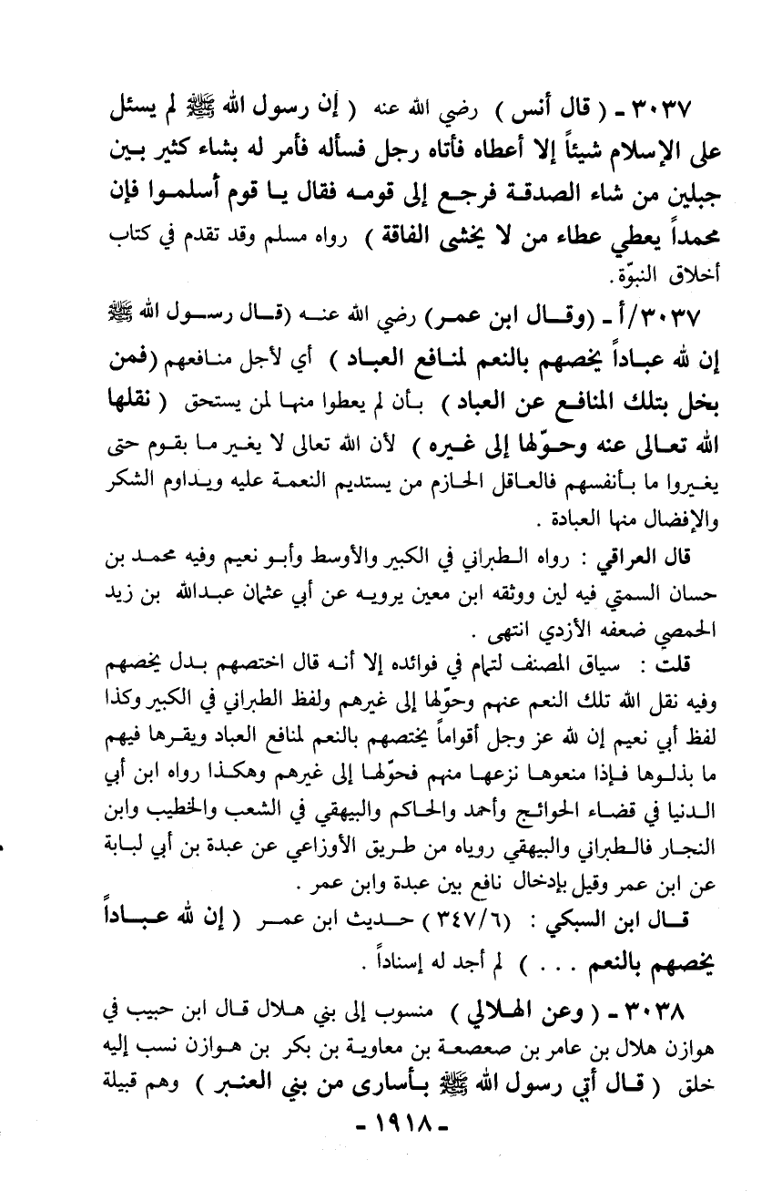 3038 - (وعن الهلالي) منسوب إلى بني هلال قال ابن حبيب في هوازن هلال بن عامر بن صعصعة بن معاوية بن بكر بن هوازن نسب إليه خلق (قال أتي رسول الله - صلّى الله عليه وسلم - بأسارى من بني العنبر) وهم قبيلة
