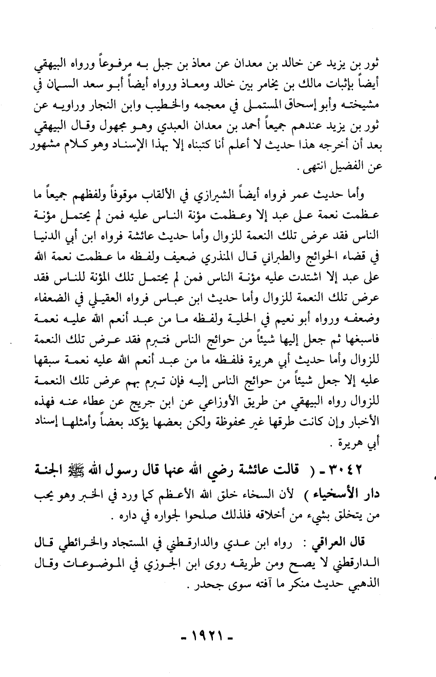 3042 - (قالت عائشة رضي الله عنها قال رسول الله - صلّى الله عليه وسلم - الجنة دار الأسخياء) لأن السخاء خلق الله الأعظم كما ورد في الخبر وهو يحب من يتخلق بشيء من أخلاقه فلذلك صلحوا لجواره في داره.