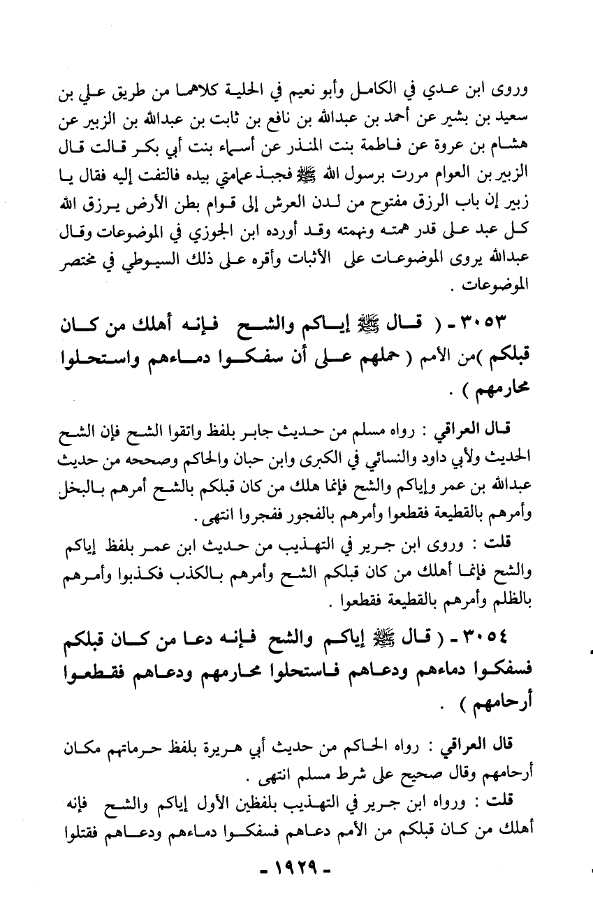 3054 - (قال - صلّى الله عليه وسلم - إياكم والشح فإنه دعا من كان قبلكم فسفكوا دماءهم ودعاهم فاستحلوا محارمهم ودعاهم فقطعوا أرحامهم).