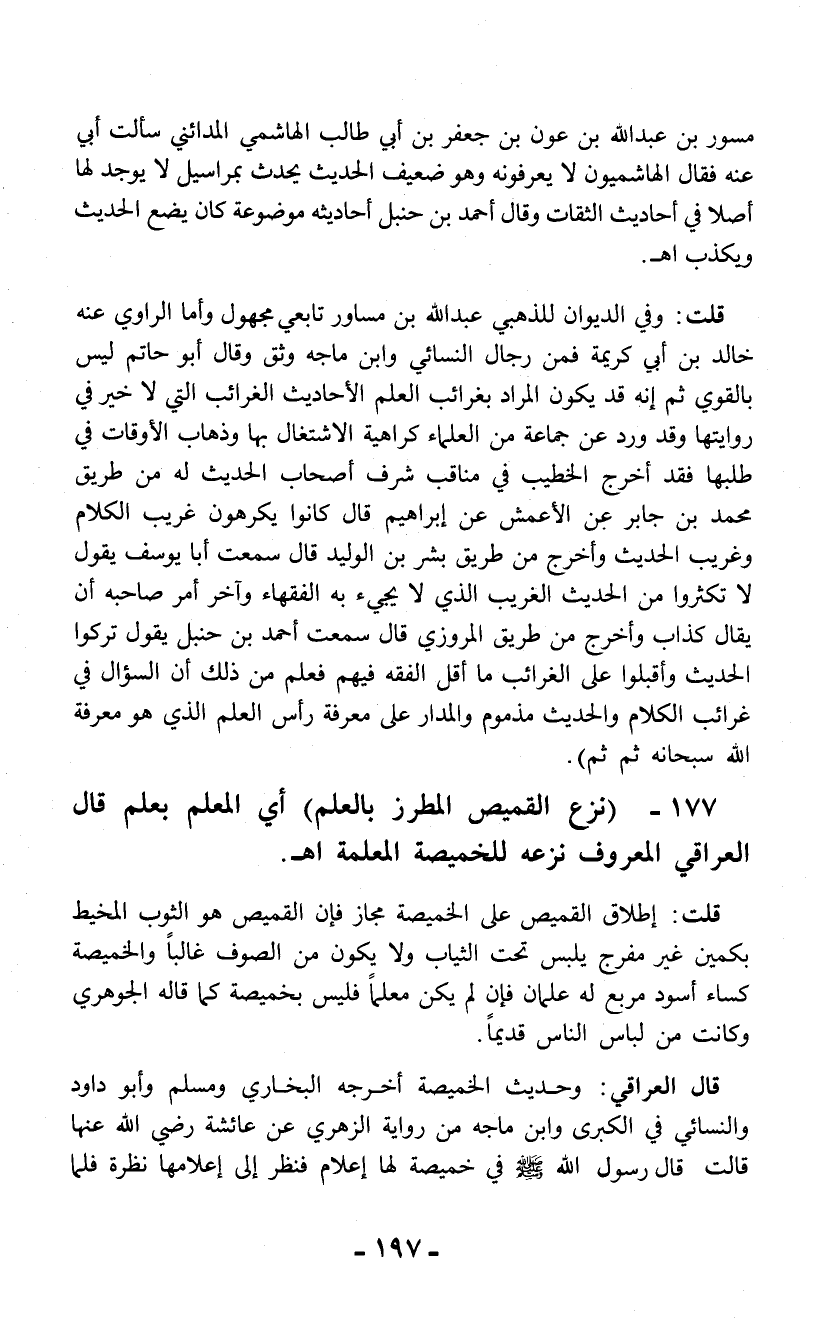 177 - (نزع القميص المطرز بالعلم) أي المعلم بعلم قال العراقي المعروف نزعه للخميصة المعلمة اهـ.