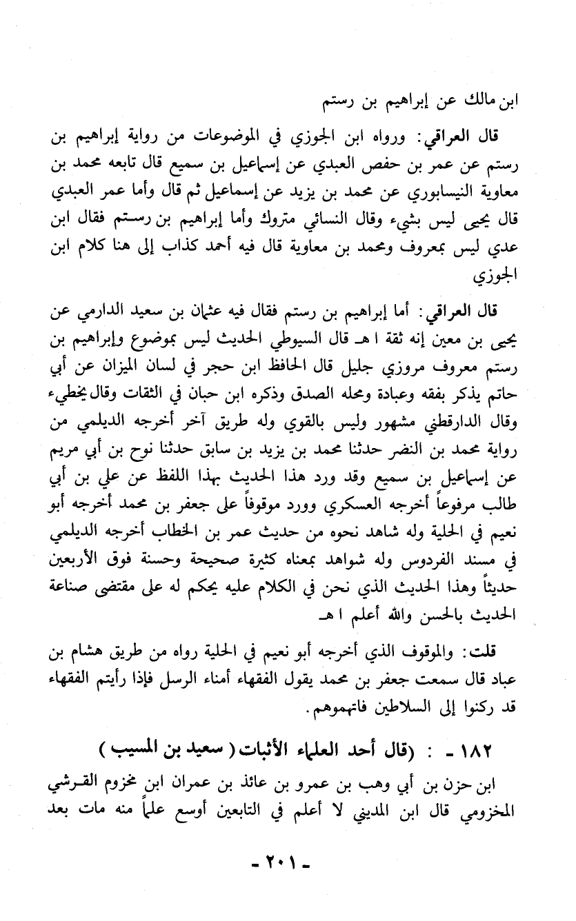 182 - : (قال أحد العلماء الأثبات (سعيد بن المسيب)