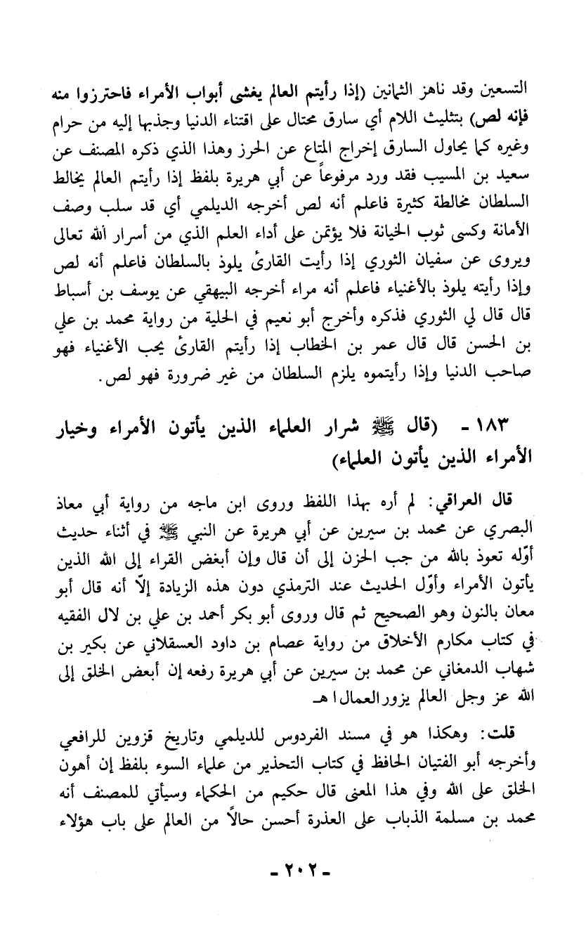 183 - (قال - صلى الله عليه وسلم - شرار العلماء الذين يأتون الأمراء وخيار الأمراء الذين يأتون العلماء)