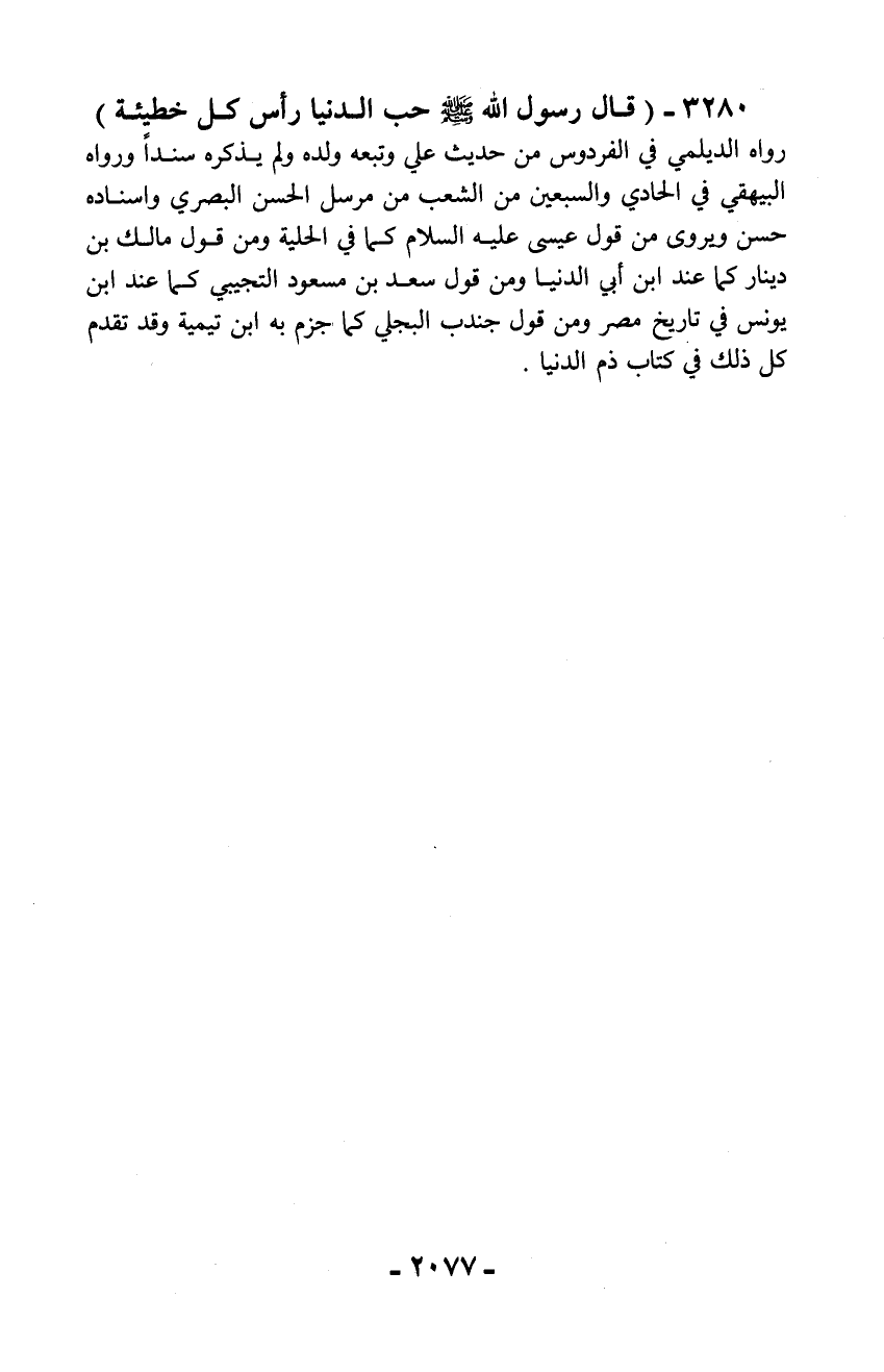 3280 - (قال رسول الله - صلّى الله عليه وسلم - حب الدنيا رأس كل خطيئة)