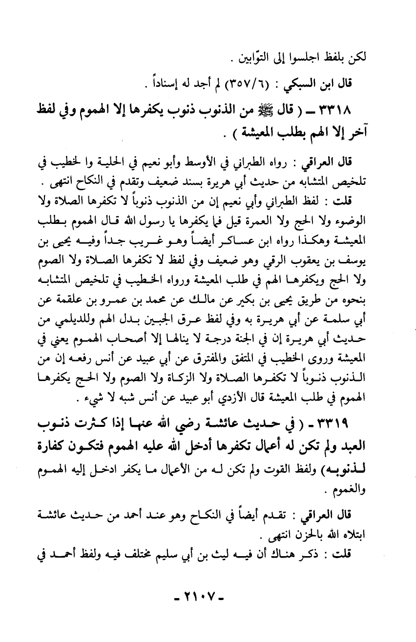 3318 - (قال - صلّى الله عليه وسلم - من الذنوب ذنوب يكفرها إلا الهموم وفي لفظ آخر إلا الهم بطلب المعيشة).