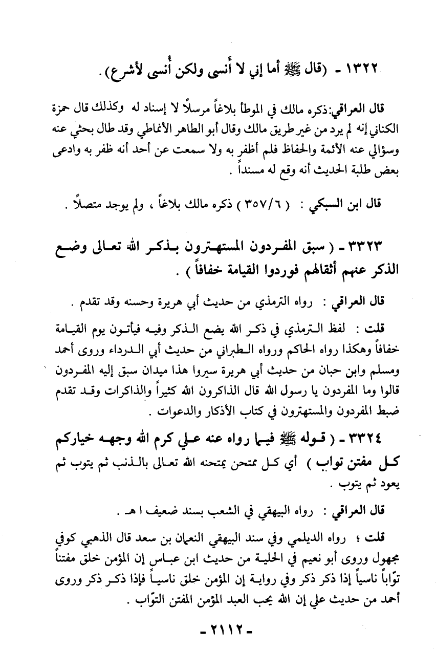 3323 - (سبق المفردون المستهترون بذكر الله تعالى وضع الذكر عنهم أثقالهم فوردوا القيامة خفافاً).