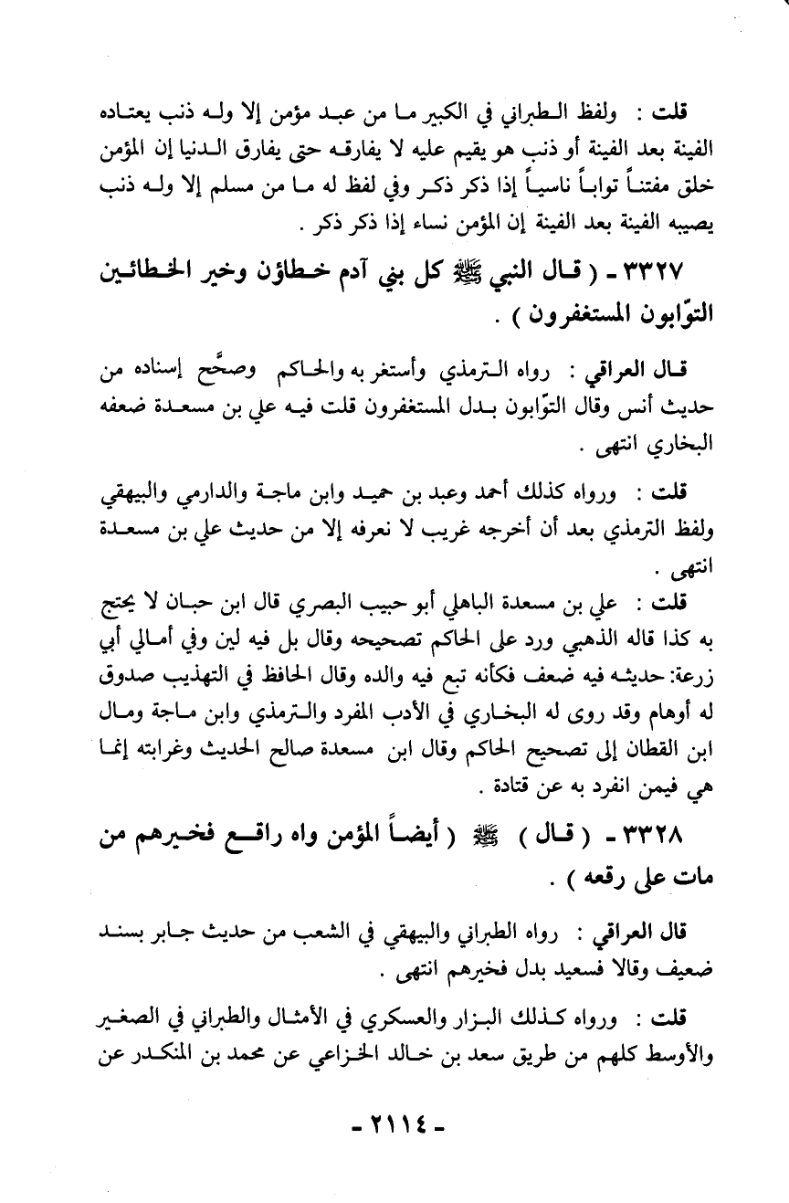 3327 - (قال النبي - صلّى الله عليه وسلم - كل بني آدم خطاؤن وخير الخطائين التوّابون المستغفرون).