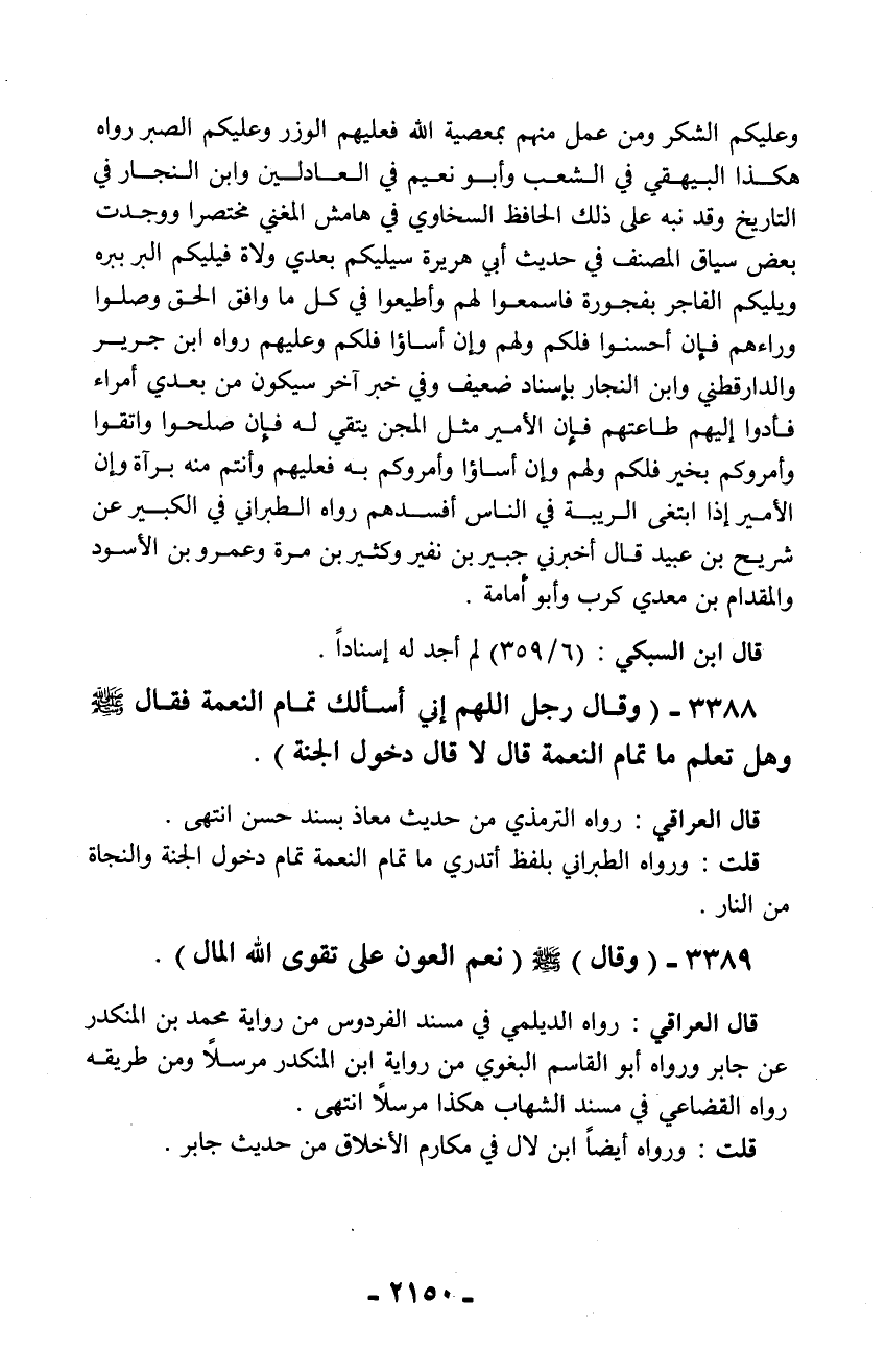 3389 - (وقال) - صلّى الله عليه وسلم - (نعم العون على تقوى الله المال).