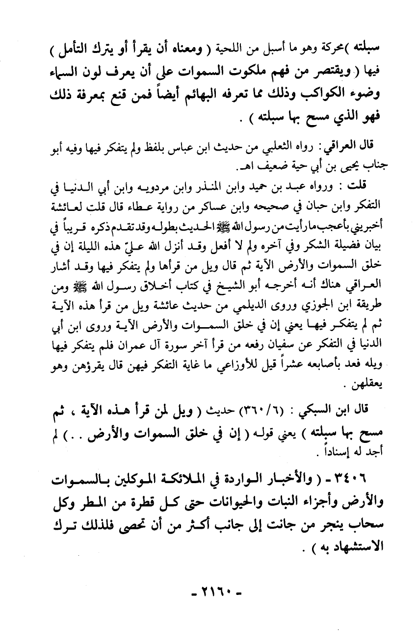 3406 - (والأخبار الواردة في الملائكة الموكلين بالسماوات والأرض وأجزاء النبات والحيوانات حتى كل قطرة من المطر وكل سحاب ينجر من جانت إلى جانب أكثر من أن تحصى فلذلك ترك الاستشهاد به).