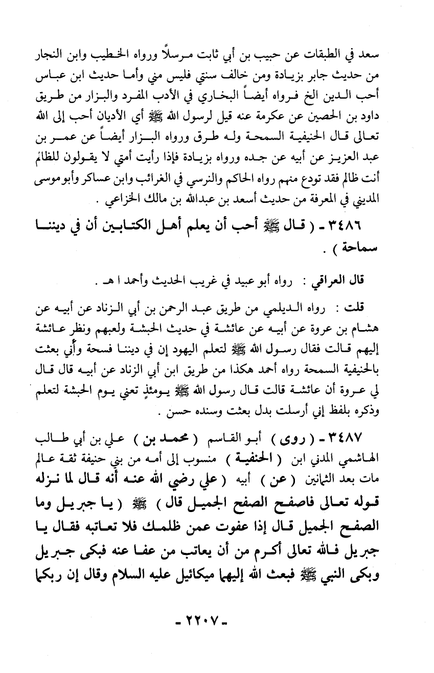 3486 - (قال - صلّى الله عليه وسلم - أحب أن يعلم أهل الكتابين أن في ديننا سماحة).