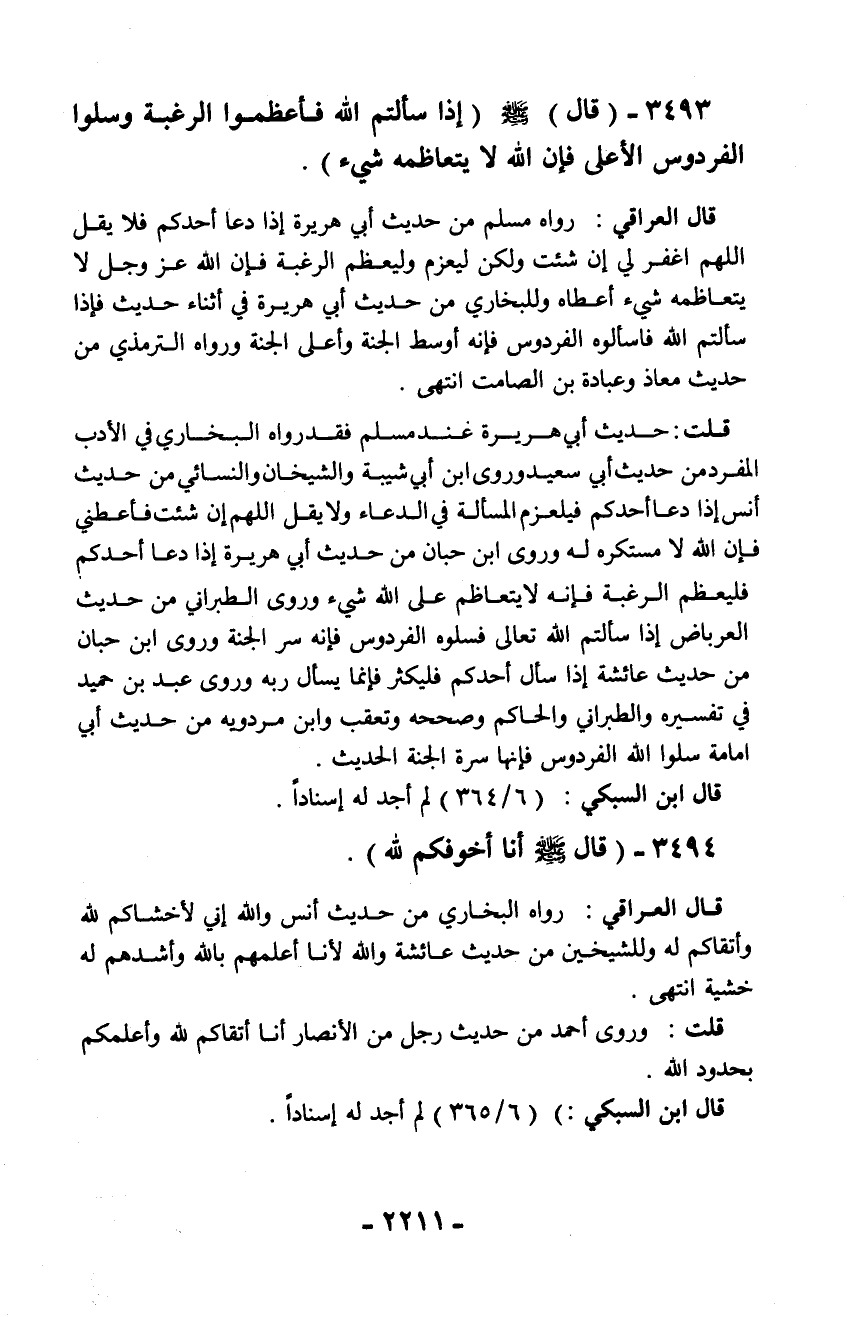 3493 - (قال) - صلّى الله عليه وسلم - (إذا سألتم الله فأعظموا الرغبة وسلوا الفردوس الأعلى فإن الله لا يتعاظمه شيء).
