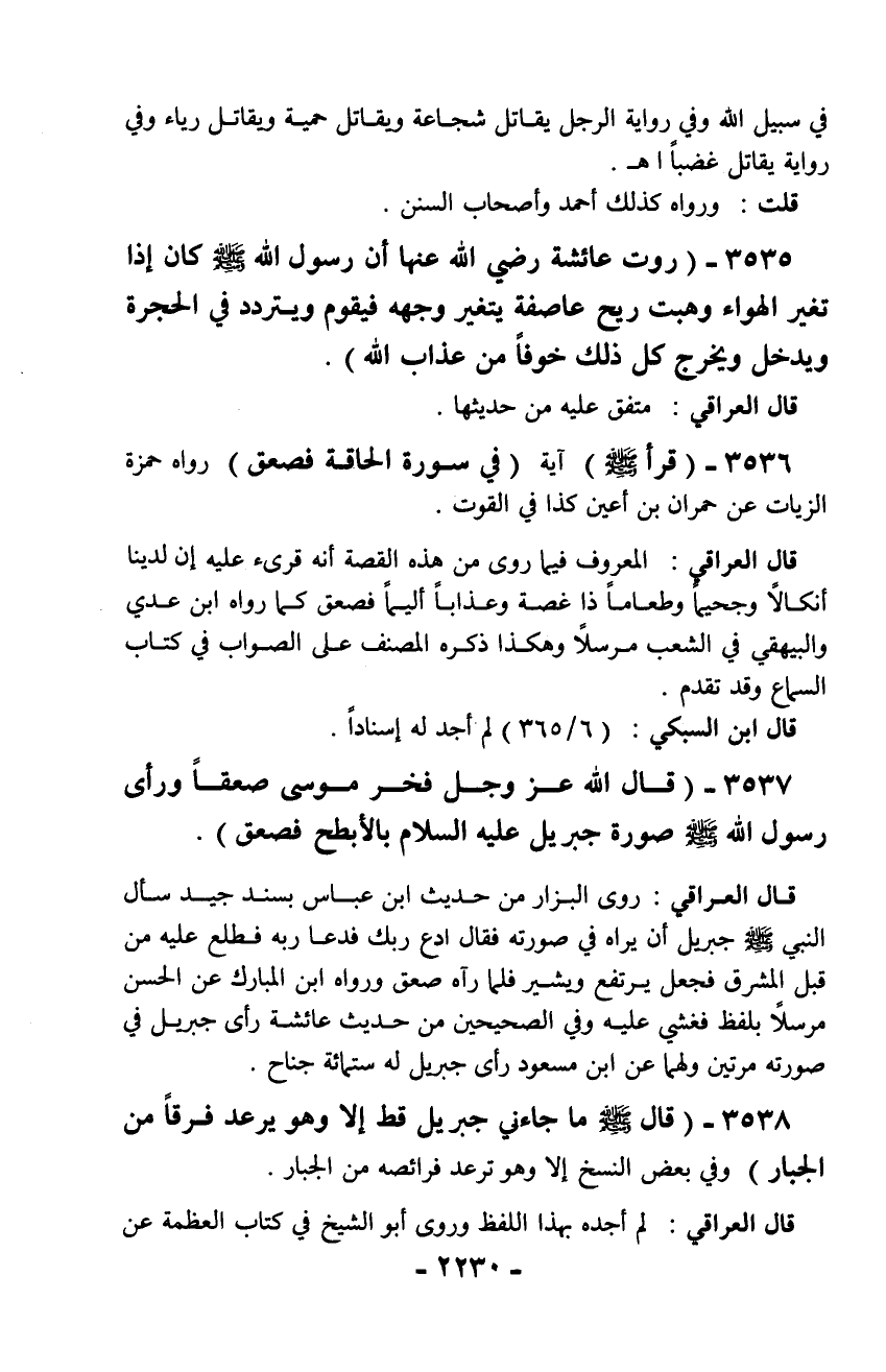 3537 - (قال الله عز وجل فخر موسى صعقاً ورأى رسول الله - صلّى الله عليه وسلم - صورة جبريل عليه السلام بالأبطح فصعق).
