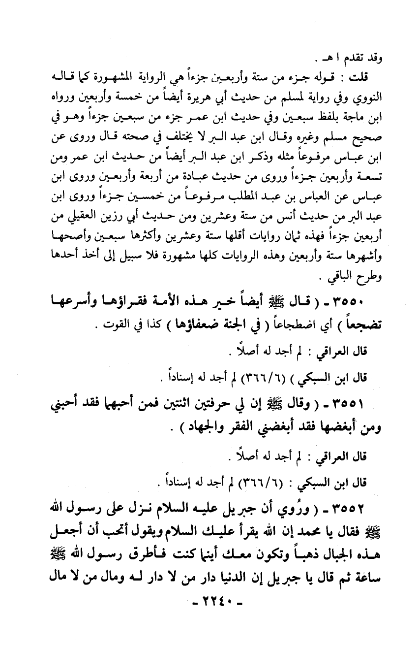 3550 - (قال - صلّى الله عليه وسلم - أيضاً خير هذه الأمة فقراؤها وأسرعها تضجعاً) أي اضطجاعاً (في الجنة ضعفاؤها) كذا في القوت.
