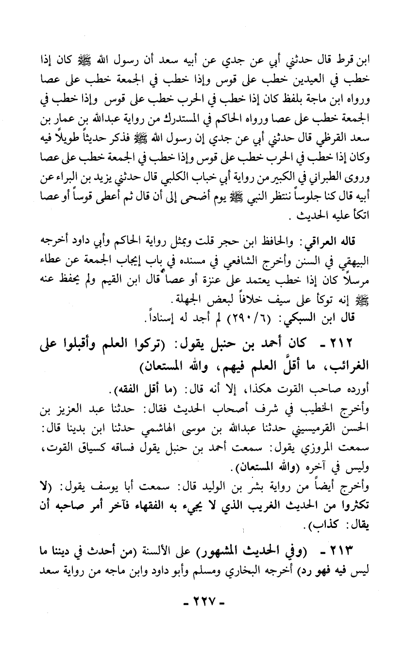212 - كان أحمد بن حنبل يقول: (تركوا العلم وأقبلوا على الغرائب، ما أقلَّ العلم فيهم، والله المستعان)