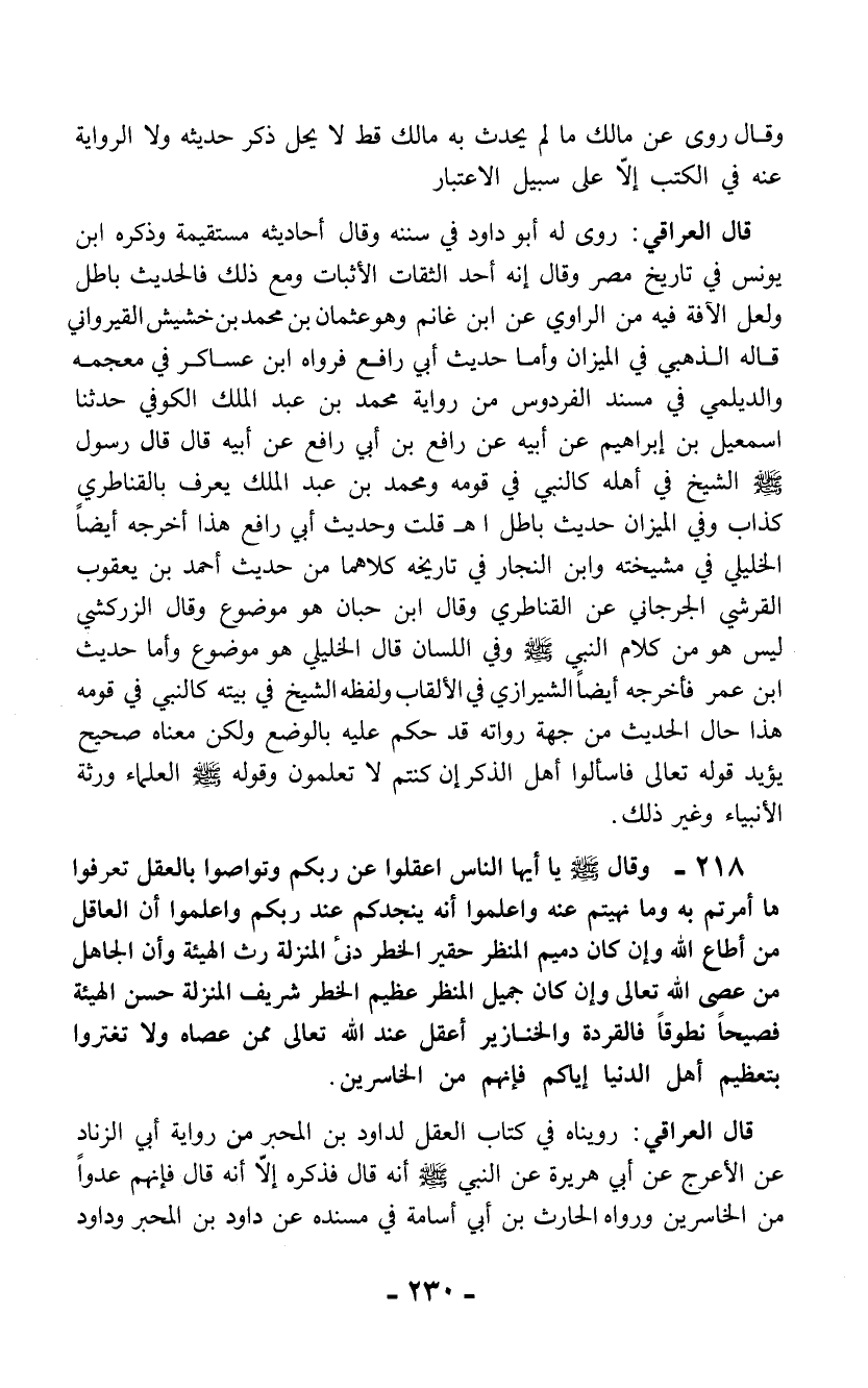 قال العراقي: رويناه في كتاب العقل لداود بن المحبر من رواية أبي الزناد عن الأعرج عن أبي هريرة عن النبي - صلى الله عليه وسلم - أنه قال فذكره إلاَّ أنه قال فإنهم عدواً من الخاسرين ورواه الحارث بن أبي أسامة في مسنده عن داود بن المحبر وداود