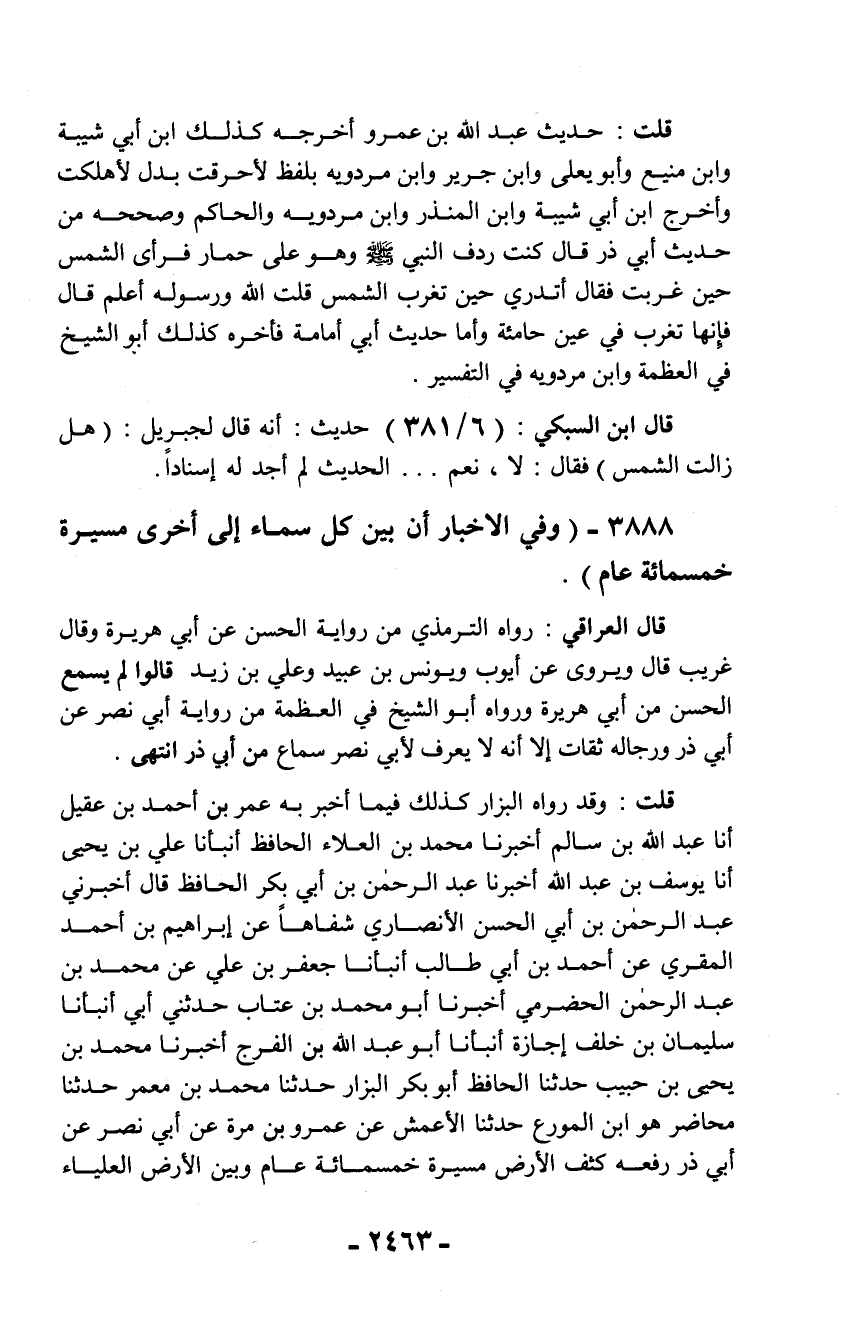 3888 - (وفي الأخبار أن بين كل سماء إلى أخرى مسيرة خمسمائة عام).
