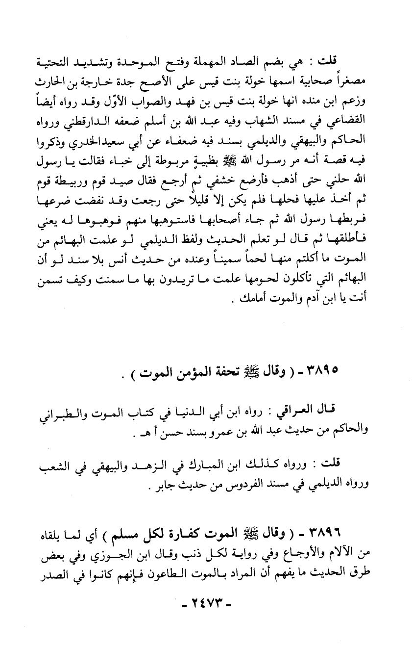 3895 - (وقال - صلّى الله عليه وسلم - تحفة المؤمن الموت).