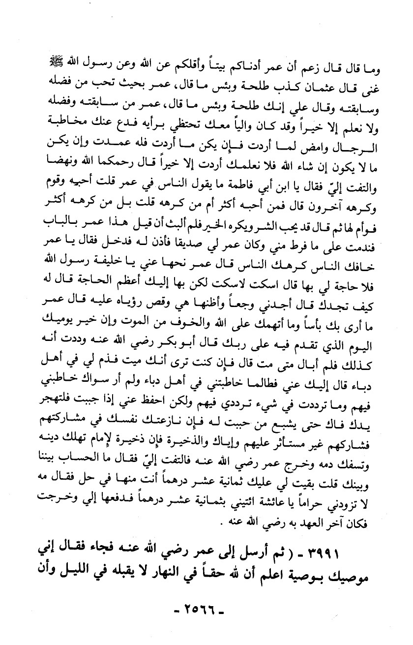 3991 - (ثم أرسل إلى عمر رضي الله عنه فجاء فقال إني موصيك بوصية اعلم أن لله حقاً في النهار لا يقبله في الليل وأن