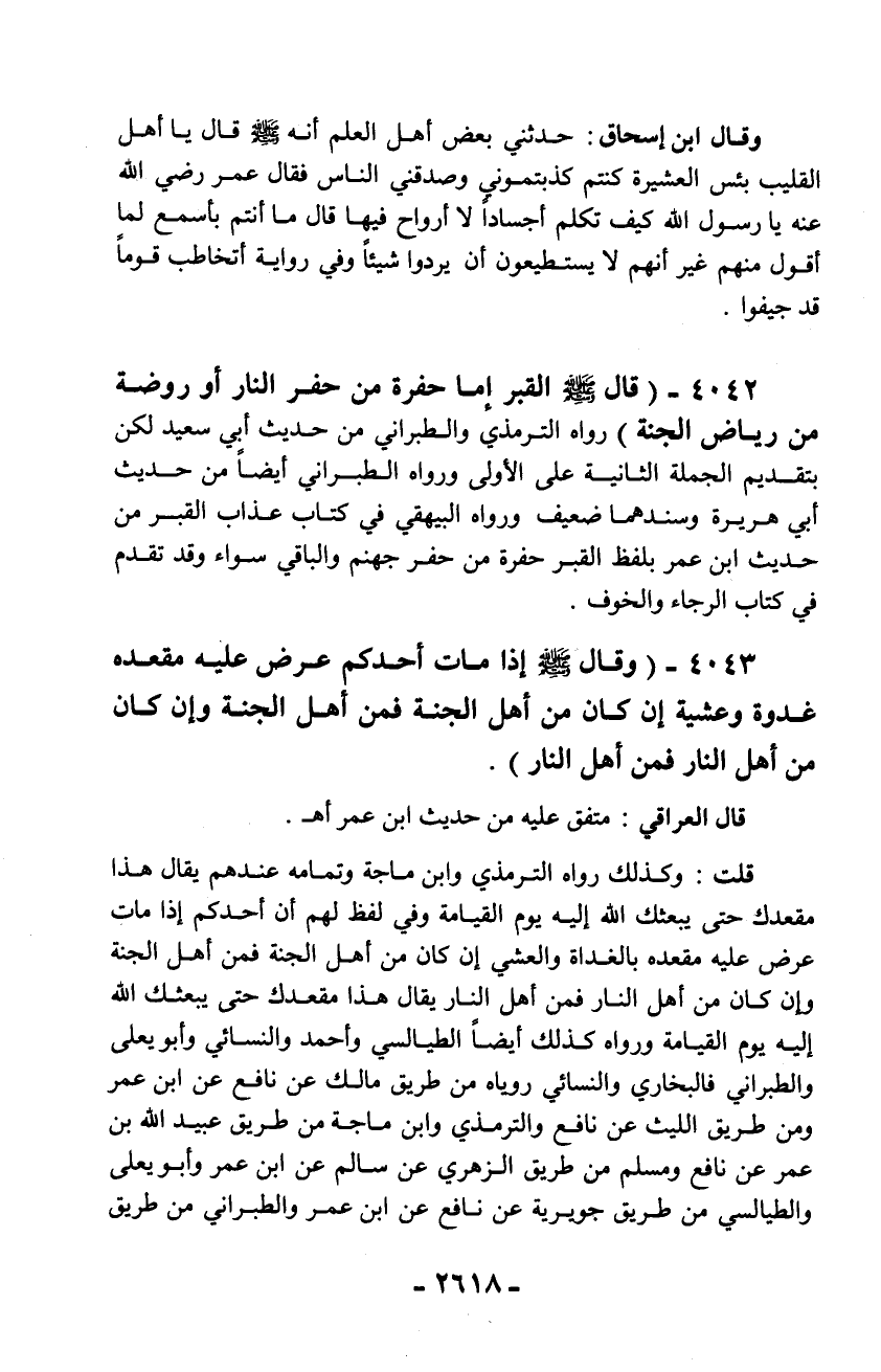 4043 - (وقال - صلّى الله عليه وسلم - إذا مات أحدكم عرض عليه مقعده غدوة وعشية إن كان من أهل الجنة فمن أهل الجنة وإن كان من أهل النار فمن أهل النار).