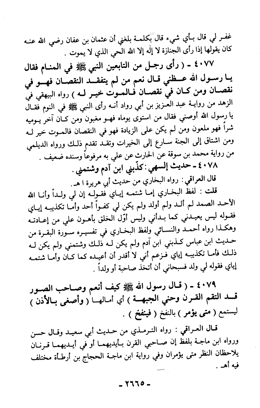 4079 - (قال رسول الله - صلّى الله عليه وسلم - كيف أنعم وصاحب الصور قد التقم القرن وحني الجبهة) أي أمالها (وأصغى بالأذن) ليستمع (متى يؤمر) بالنفخ (فينفخ).