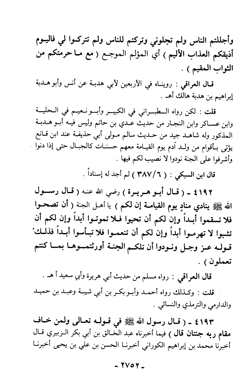 4193 - (قال رسول الله - صلّى الله عليه وسلم - في قوله تعالى ولمن خاف مقام ربه جنتان قال) فيما أخبرناه عبد الخالق بن أبي بكر الزبيري قال أخبرنا محمد بن إبراهيم الكوراني أخبرنا الحسن بن علي بن يحيى أخبرنا
