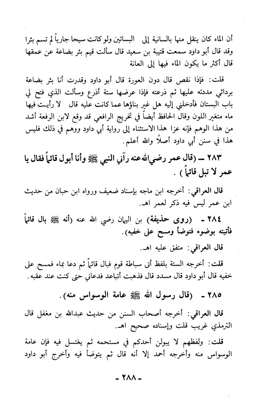 283 - (قال عمر رضي الله عنه رآني النبي - صلى الله عليه وسلم - وأنا أبول قائماً فقال يا عمر لا تبل قائماً).