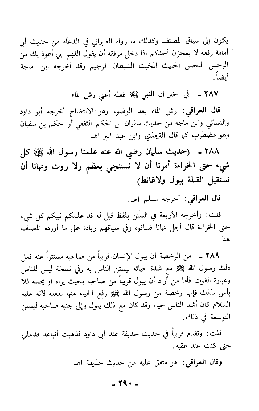 287 - في الخبر أن النبي - صلى الله عليه وسلم - فعله أعني رش الماء.
