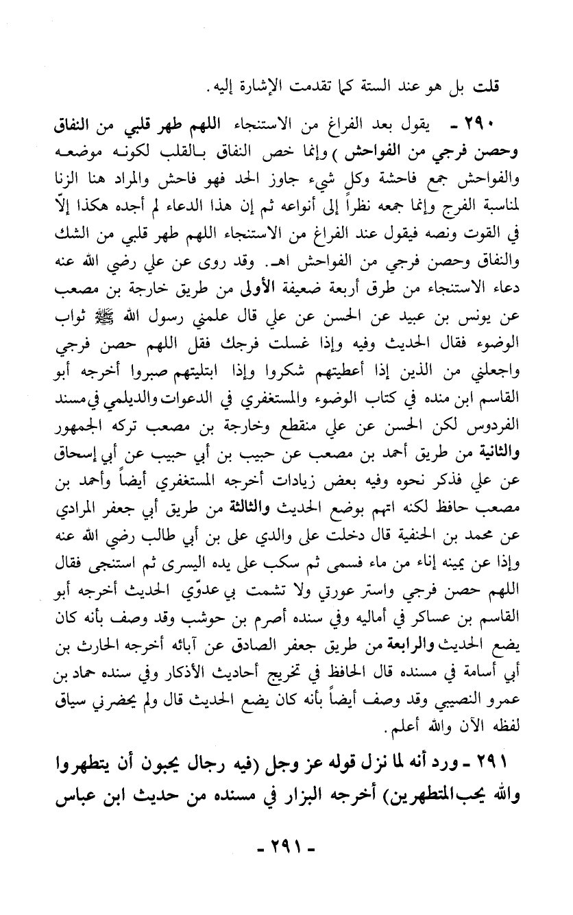291 - ورد أنه لما نزل قوله عز وجل (فيه رجال يحبون أن يتطهروا والله يحب المتطهرين) أخرجه البزار في مسنده من حديث ابن عباس