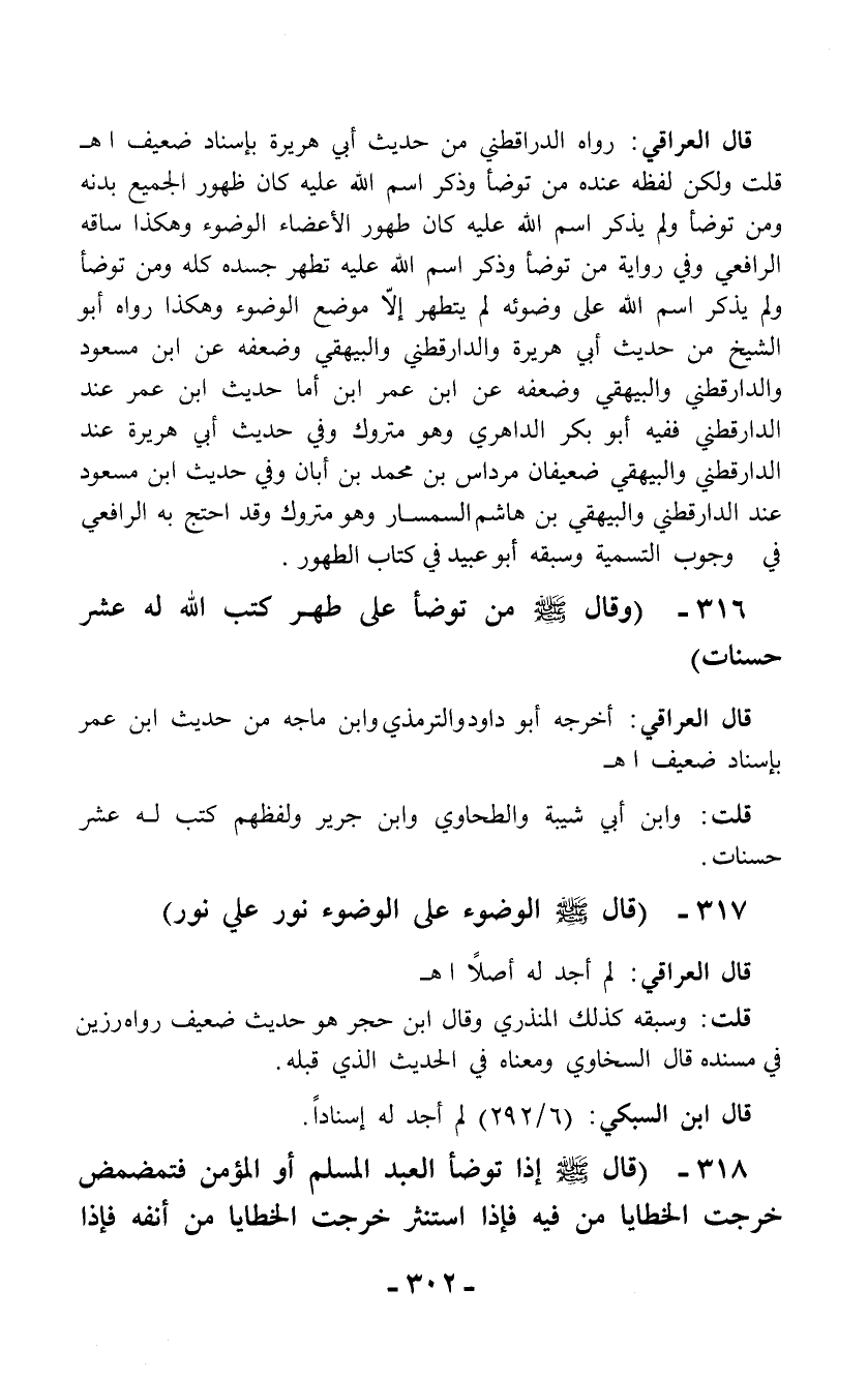316 - (وقال - صلى الله عليه وسلم - من توضأ على طهر كتب الله له عشر حسنات)